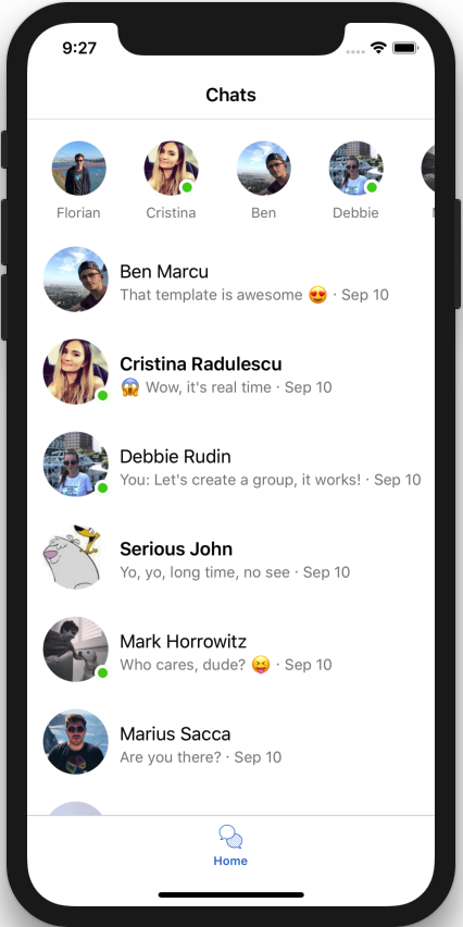 Inspired by Facebook Messenger, this iOS chat app template will give you and your users an amazing mobile experience. A familiar messaging design is great for your userbase since users are already comfortable with the look and feel of Messenger, as well as its general messaging flow. Using an industry standard app design for chatting is a powerful way to boost user engagement and maximize your chances to succeed! Everyone lovesĀ those bubbles and tails UI views!