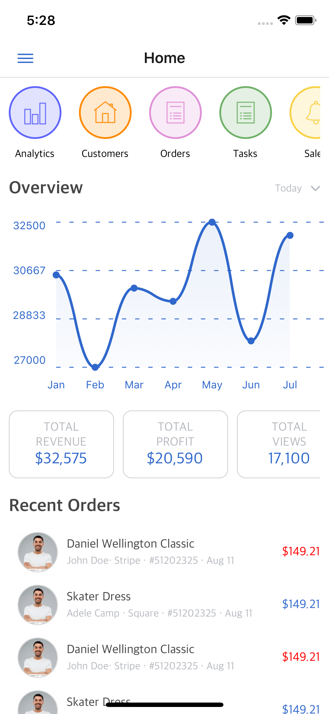 Make an admin dashboard app in minutes with our fully customizable React Native Dashboard App source code.