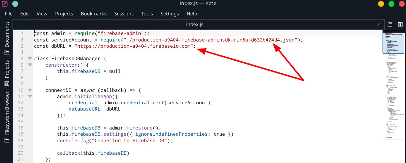 Lastly you have to edit index.js that is found in the same folder, in db/firebaseDB and change the highlighted lines of code.