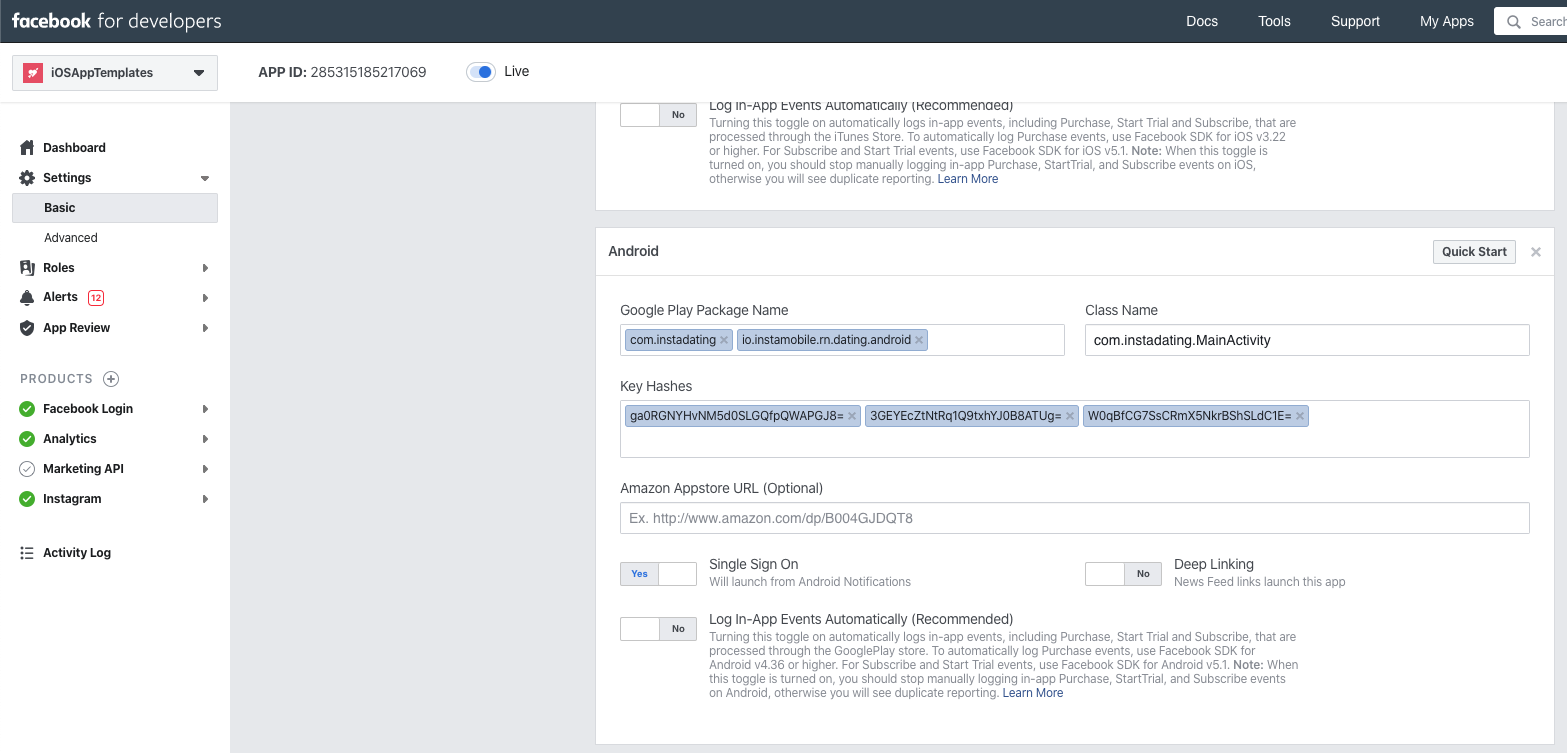 Follow Facebook’s documentation to generate a key hash for your debug or/and release keystore. This is used for security purposes.