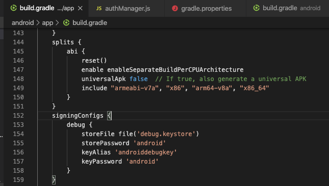 When asked for a password, just use android. This will work when running the app in debug mode. For Windows users, you can generate a private signing key using keytool. keytool must be run from C:\Program Files\Java\jdkx.x.x_x\bin. If you are building the final app for production (Google Play publishing), follow the official React Native docs on how to generate a production signed binary. If you are still in development mode, you can use the existing debug signing config that we’ve created for you already. You can see the configuration of this signing config in android/app/build.gradle file:
